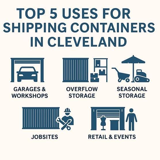 Cleveland weather doesn’t mess around lake-effect snow, hot summers, and plenty of rain. Wooden sheds and traditional garages often don’t hold up. Shipping containers, on the other hand, were built for global shipping and stormy seas.